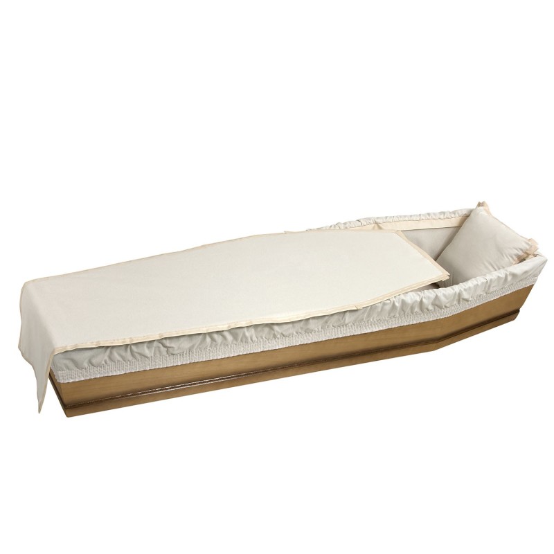 Capiton ivoire avec cache bord - bicolore, pour cercueil.