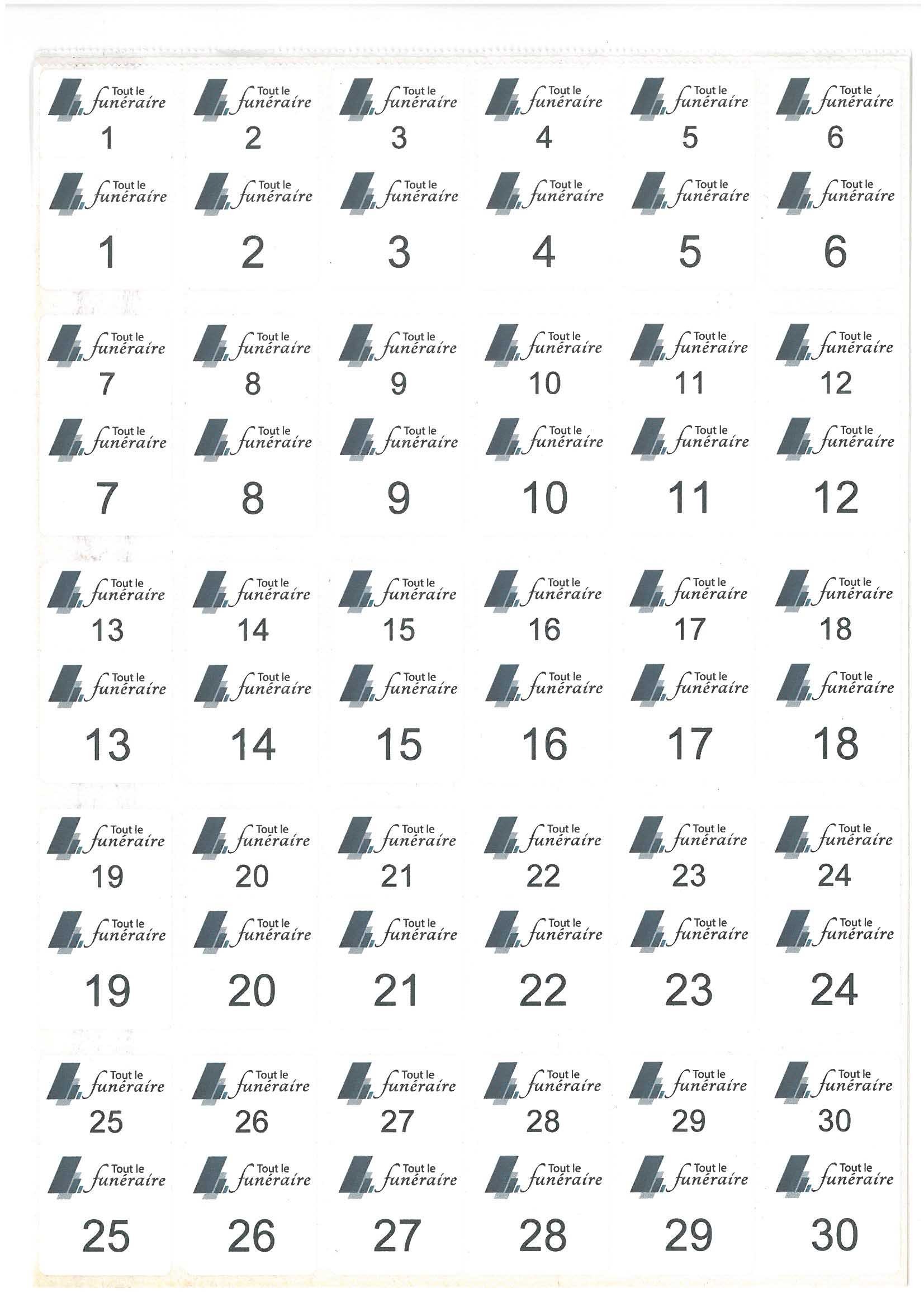 Etiquettes jumelles numérotées en planches.