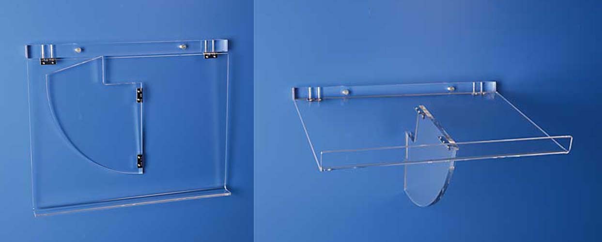 Pupitre mural pliable en plexiglas pour poser les registres dans vos salons.