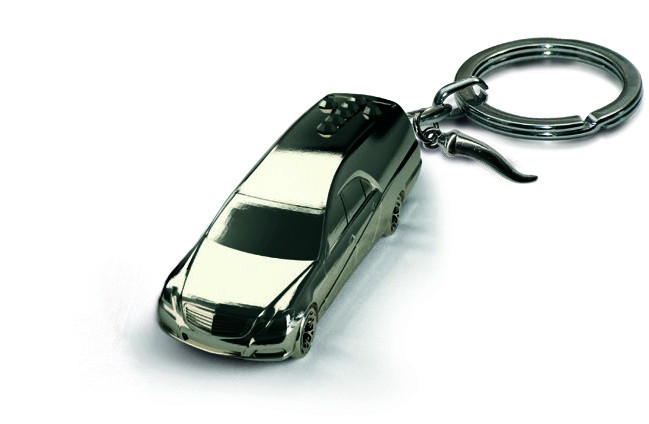 Porte-clés corbillard, en métal noir