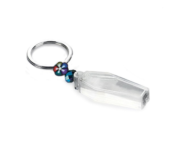 Porte-clés cercueil avec rose, en plexiglass