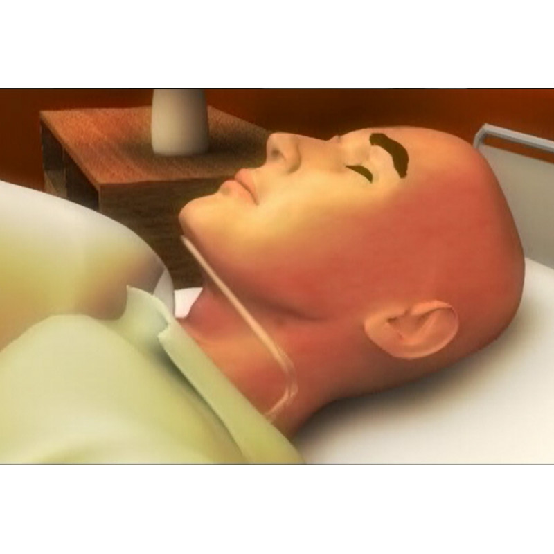 1. La mentonnière doit être mise en place sur le défunt dès sa préparation, avant l'apparition de la rigidité cadavérique. Le défunt doit être allongé avec un petit oreiller sous la tête.