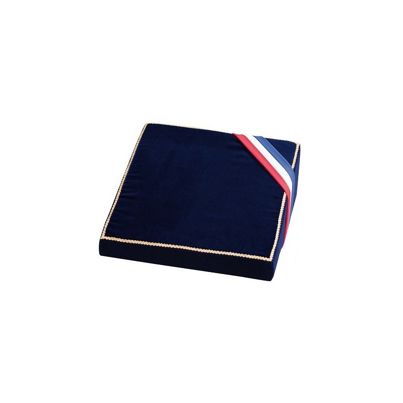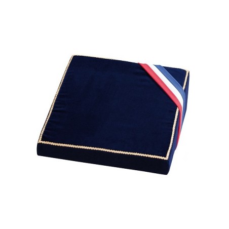 Coussin porte-décorations sur forme trapèze, en mousse avec cravate tricolore fixé par velcro