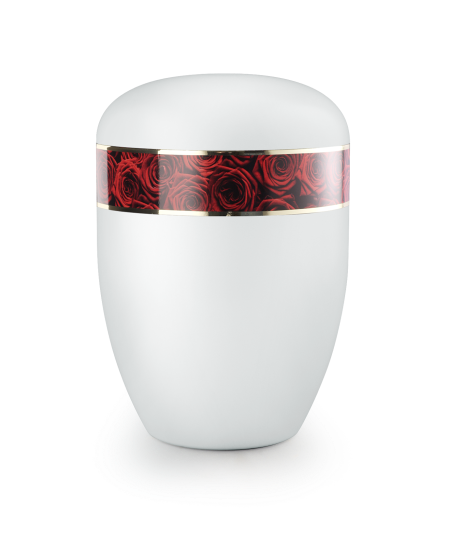 Urne funéraire biodégradable blanche bandeau de Roses